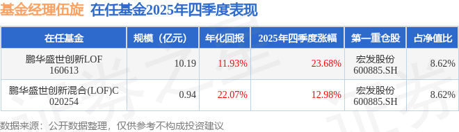 证券之星消息,截止2025年四季度末,基金经理伍旋旗下共管理2只基金,本季度表现最佳的为鹏华盛世创新LOF(160613),季度净值涨23.68%。
