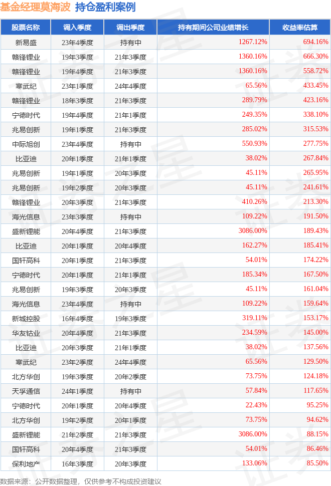 以下为莫海波所任职基金的部分重仓股调仓案例: