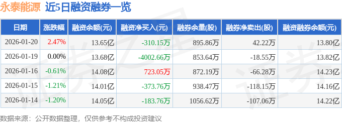 证券之星消息,截至2026年1月20日收盘,永泰能源(600157)报收于1.66元,上涨2.47%,换手率4.2%,成交量915.68万手,成交额15.01亿元。