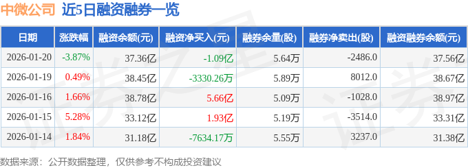 中微公司融资融券信息显示,融资方面,当日融资买入5.16亿元,融资偿还6.24亿元,融资净偿还1.09亿元。融券方面,融券卖出3971.0股,融券偿还6457.0股,融券余量5.64万股,融券余额2056.19万元。融资融券余额37.56亿元。
