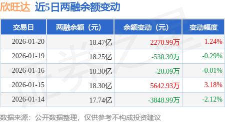 证券之星消息,1月20日,欣旺达(300207)融资买入1.66亿元,融资偿还1.43亿元,融资净买入2299.7万元,融资余额18.4亿元。
