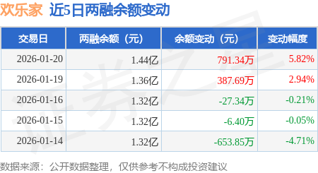证券之星消息,1月20日,欢乐家(300997)融资买入5370.7万元,融资偿还4580.41万元,融资净买入790.28万元,融资余额1.44亿元,近20个交易日中有11个交易日出现融资净买入。