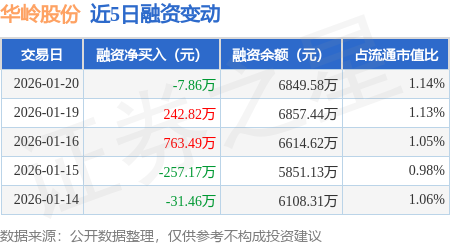 证券之星消息,1月20日,华岭股份(920139)融资买入874.46万元,融资偿还882.32万元,融资净卖出7.86万元,融资余额6849.58万元。