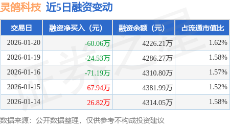 证券之星消息,1月20日,灵鸽科技(920284)融资买入207.34万元,融资偿还267.4万元,融资净卖出60.06万元,融资余额4226.21万元,近20个交易日中有11个交易日出现融资净买入。