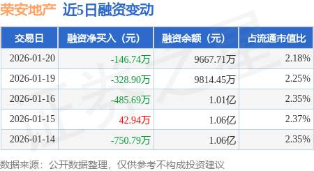 证券之星消息,1月20日,荣安地产(000517)融资买入422.97万元,融资偿还569.71万元,融资净卖出146.74万元,融资余额9667.71万元。