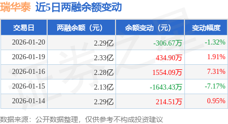 证券之星消息,1月20日,瑞华泰(688323)融资买入3459.46万元,融资偿还3766.13万元,融资净卖出306.67万元,融资余额2.29亿元,近20个交易日中有12个交易日出现融资净买入。