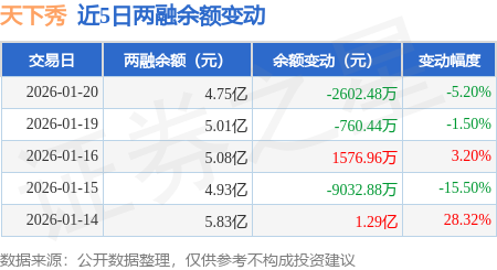 证券之星消息,1月20日,天下秀(600556)融资买入9283.89万元,融资偿还1.19亿元,融资净卖出2602.5万元,融资余额4.72亿元,近20个交易日中有11个交易日出现融资净买入。