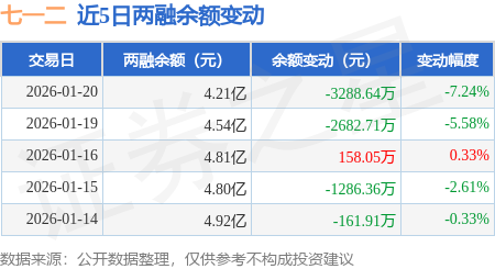 证券之星消息,1月20日,七一二(603712)融资买入7518.31万元,融资偿还1.08亿元,融资净卖出3288.45万元,融资余额4.21亿元。