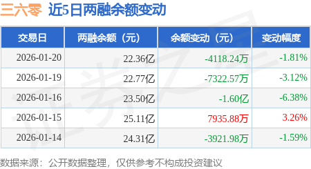 证券之星消息,1月20日,三六零(601360)融资买入2.07亿元,融资偿还2.47亿元,融资净卖出4083.77万元,融资余额22.32亿元,近20个交易日中有11个交易日出现融资净买入。