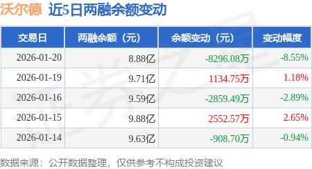 证券之星消息,1月20日,沃尔德(688028)融资买入1.09亿元,融资偿还1.92亿元,融资净卖出8296.08万元,融资余额8.88亿元,近20个交易日中有11个交易日出现融资净买入。