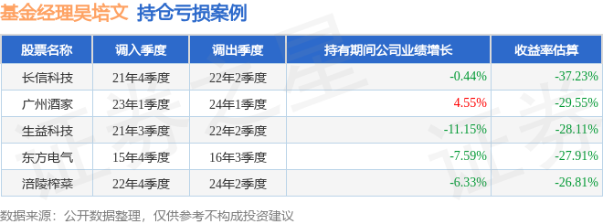吴培文管理的汇丰晋信价值先锋股票A基金在21年4季度买入长信科技,在持有2个季度后在22年2季度卖出。持有期间的估算收益率为-37.23%,持有期间长信科技在2021年到2022年的年报营业总收入降幅为0.44%。