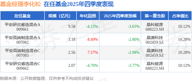 证券之星消息,截止2025年四季度末,基金经理李化松旗下共管理4只基金,本季度表现最佳的为平安高端制造混合A(007082),季度净值跌2.8%。