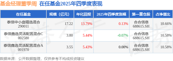证券之星消息,截止2025年四季度末,基金经理董季周旗下共管理3只基金,本季度表现最佳的为泰信中小盘精选混合(290011),季度净值涨0.13%。