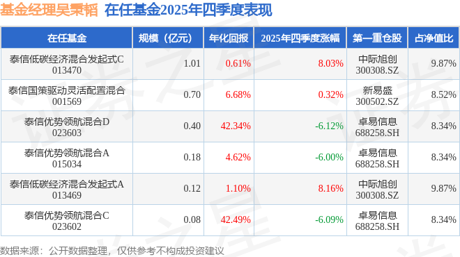 证券之星消息,截止2025年四季度末,基金经理吴秉韬旗下共管理6只基金,本季度表现最佳的为泰信低碳经济混合发起式A(013469),季度净值涨8.16%。