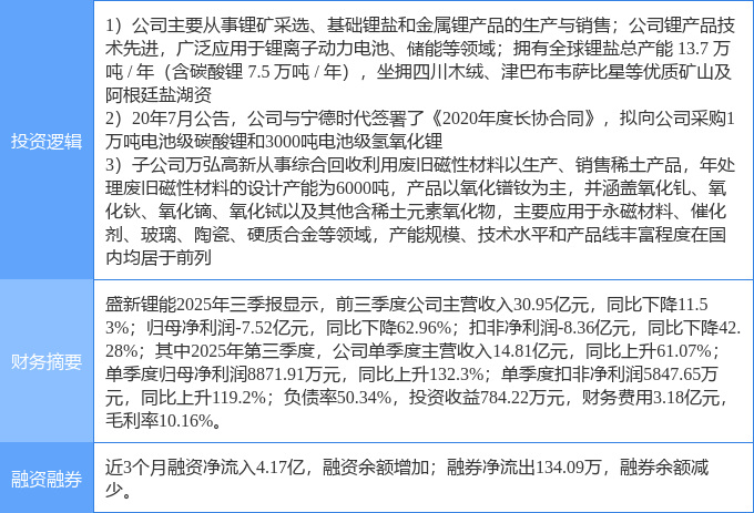 该股为锂矿/碳酸锂,镨钕,宁德时代概念股概念热股,当日锂矿/碳酸锂概念上涨4.34%,镨钕概念上涨2.73%,宁德时代概念股概念上涨2.29%。