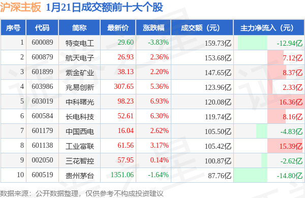 当日沪深主板成交额前10大个股中8只个股收涨,平均涨幅3.64%,其中特变电工(600089)以成交额159.73亿元排第一。从主力资金流入看,成交额前10大个股中有6只个股呈现主力资金净流入。