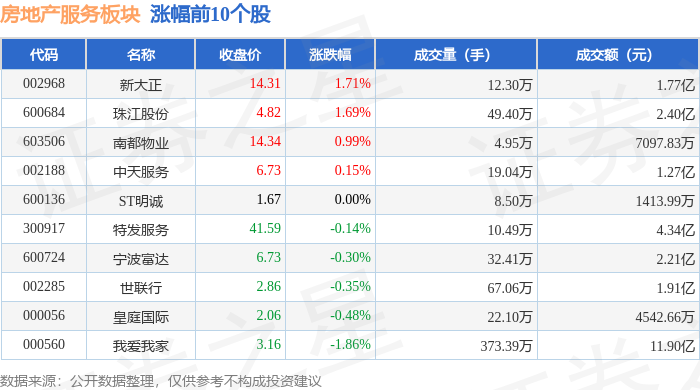 从资金流向上来看,当日房地产服务板块主力资金净流出2.97亿元,游资资金净流入9643.49万元,散户资金净流入2.01亿元。房地产服务板块个股资金流向见下表: