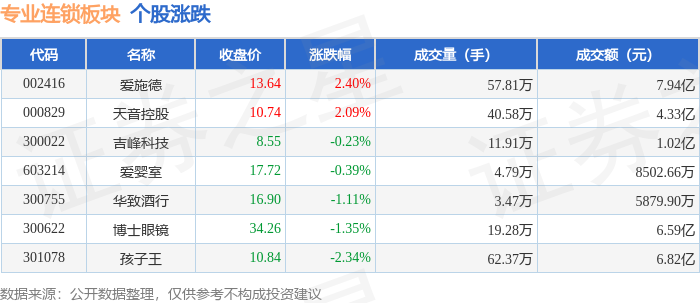从资金流向上来看,当日专业连锁板块主力资金净流出7611.83万元,游资资金净流入1353.41万元,散户资金净流入6258.43万元。专业连锁板块个股资金流向见下表: