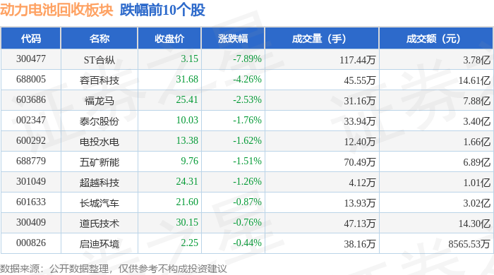 从资金流向上来看,当日动力电池回收板块主力资金净流入12.96亿元,游资资金净流出11.38亿元,散户资金净流出1.58亿元。动力电池回收板块个股资金流向见下表: