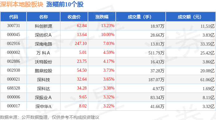 从资金流向上来看,当日深圳本地股板块主力资金净流入16.44亿元,游资资金净流出8.95亿元,散户资金净流出7.49亿元。深圳本地股板块个股资金流向见下表: