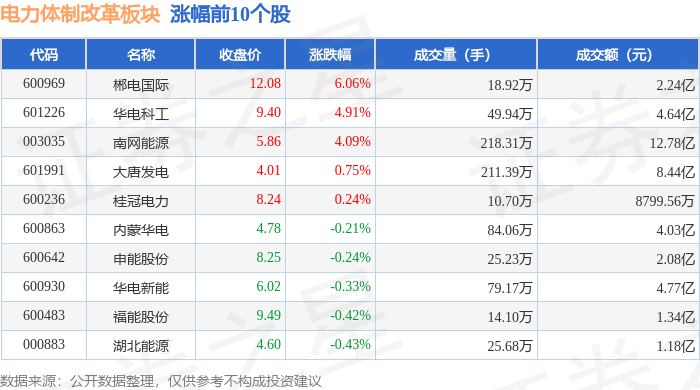 从资金流向上来看,当日电力体制改革板块主力资金净流出20.07亿元,游资资金净流入1.43亿元,散户资金净流入18.63亿元。电力体制改革板块个股资金流向见下表: