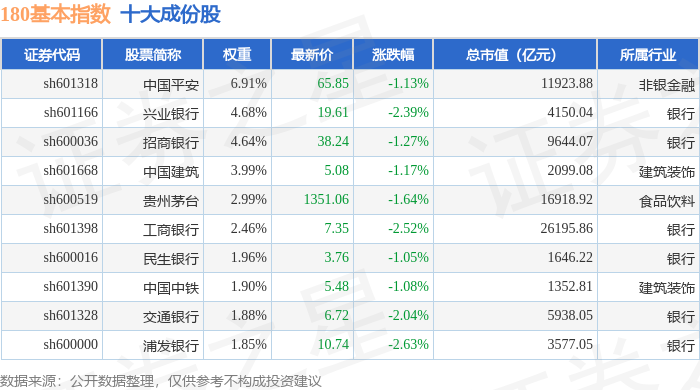 180基本(000053)指数十大成份股详情如下: