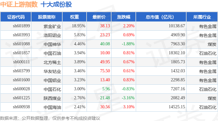 中证上游(000961)指数十大成份股详情如下: