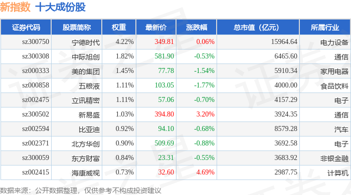 新指数(399100)十大成份股详情如下: