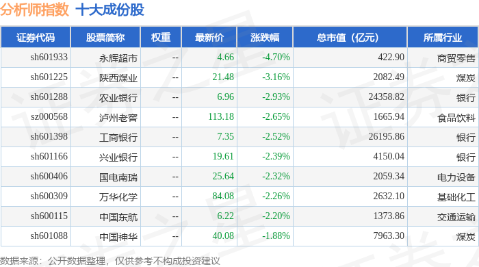 分析师指数(399354)十大成份股详情如下: