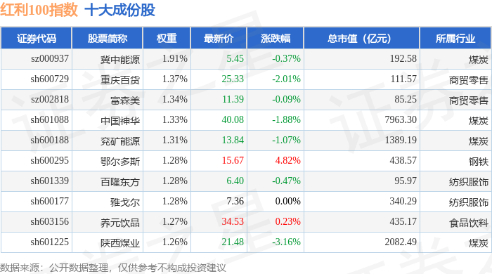 红利100(399411)指数十大成份股详情如下: