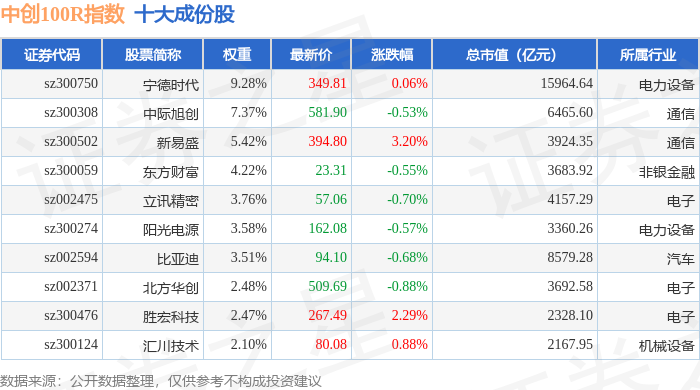 中创100R(399611)指数十大成份股详情如下: