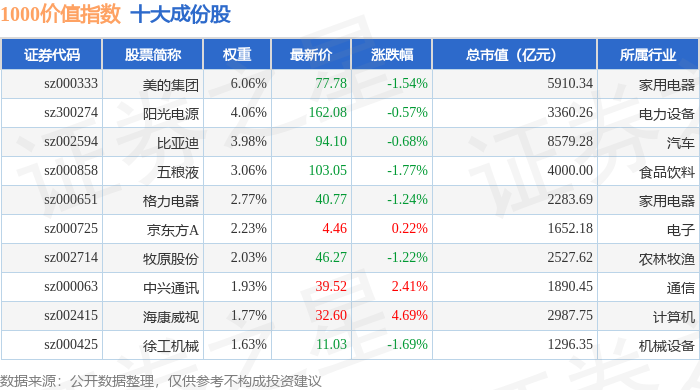 证券之星消息,1月21日,1000价值(399631)指数报收于2343.89点,涨0.06%,成交2063.36亿元,换手率1.73%。当日该指数成份股中,上涨的有135家,大中矿业以10.01%的涨幅领涨,下跌的有188家,黔源电力以5.49%的跌幅领跌。