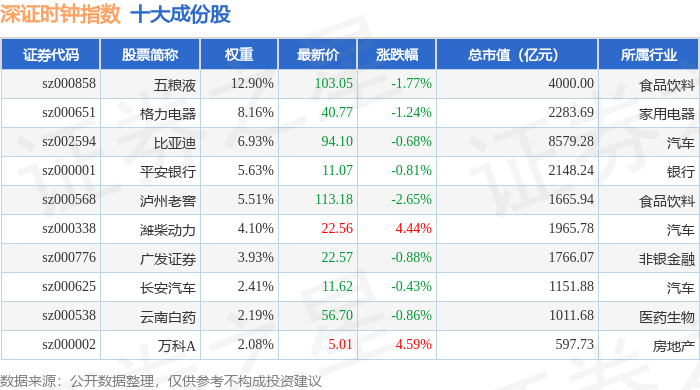 证券之星消息,1月21日,深证时钟(399644)指数报收于3680.95点,涨0.37%,成交835.95亿元,换手率2.33%。当日该指数成份股中,上涨的有51家,惠博普以10.08%的涨幅领涨,下跌的有47家,西部材料以6.01%的跌幅领跌。