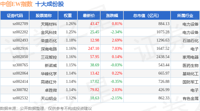 证券之星消息,1月21日,中创EW(399660)指数报收于2935.95点,涨0.62%,成交2582.92亿元,换手率1.7%。当日该指数成份股中,上涨的有43家,通富微电以10.0%的涨幅领涨,下跌的有57家,海思科以2.38%的跌幅领跌。