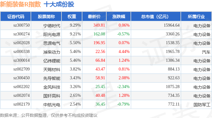 资金流向方面,新能装备R(470043)指数成份股当日主力资金净流出合计11.66亿元,游资资金净流出合计10.0亿元,散户资金净流入合计21.65亿元。成份股资金流向详情见下表: