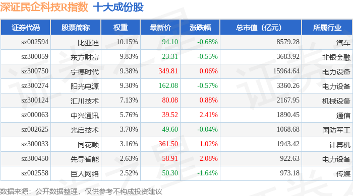 深证民企科技R(470059)指数十大成份股详情如下: