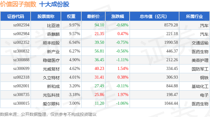 价值因子(980056)指数十大成份股详情如下: