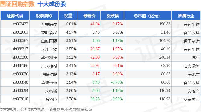 国证回购(980063)指数十大成份股详情如下: