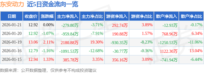 证券之星消息,截至2026年1月21日收盘,东安动力(600178)报收于12.92元,上涨0.0%,换手率1.25%,成交量5.85万手,成交额7534.61万元。