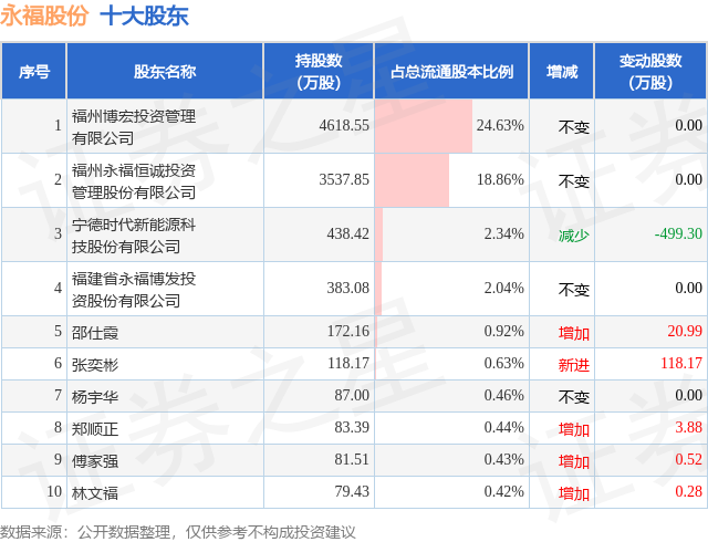 根据永福股份2025年三季报公布的十大股东详情如下: