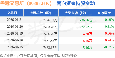 证券之星消息,1月21日南向资金减持36.76万股香港交易所(00388.HK)。近5个交易日中,获南向资金减持的有3天,累计净减持42.61万股。近20个交易日中,获南向资金增持的有14天,累计净增持542.54万股。截至目前,南向资金持有香港交易所(00388.HK)7426.52万股,占公司已发行普通股的5.85%。