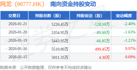 证券之星消息,1月21日南向资金减持128.5万股网龙(00777.HK)。近5个交易日中,获南向资金增持的有2天,累计净增持219.4万股。近20个交易日中,获南向资金减持的有16天,累计净减持412.36万股。截至目前,南向资金持有网龙(00777.HK)5226.45万股,占公司已发行普通股的9.83%。