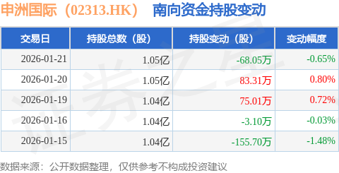 证券之星消息,1月21日南向资金减持68.05万股申洲国际(02313.HK)。近5个交易日中,获南向资金减持的有3天,累计净减持68.53万股。近20个交易日中,获南向资金增持的有11天,累计净增持360.73万股。截至目前,南向资金持有申洲国际(02313.HK)1.05亿股,占公司已发行普通股的6.95%。