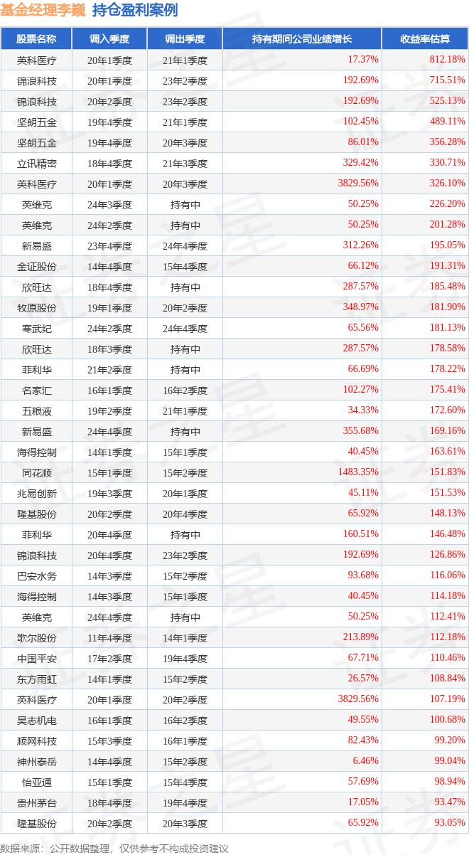 以下为李巍所任职基金的部分重仓股调仓案例: