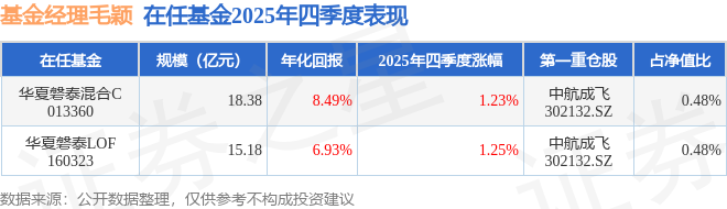 证券之星消息,截止2025年四季度末,基金经理毛颖旗下共管理2只基金,本季度表现最佳的为华夏磐泰LOF(160323),季度净值涨1.25%。