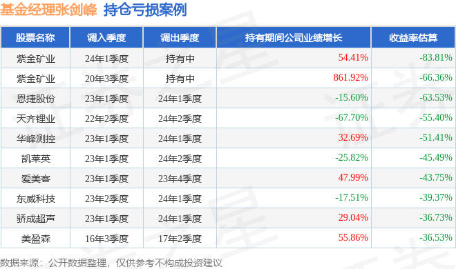 张剑峰管理的工银优质成长混合A基金在24年1季度买入紫金矿业,已连续持有1年又3个季度。持有期间的估算收益率为-83.82%,持有期间紫金矿业在2024年到2025年的中报归属净利润增幅达54.41%。