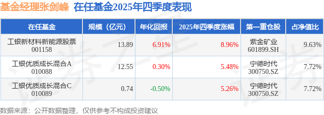 证券之星消息,截止2025年四季度末,基金经理张剑峰旗下共管理3只基金,本季度表现最佳的为工银新材料新能源股票(001158),季度净值涨8.96%。