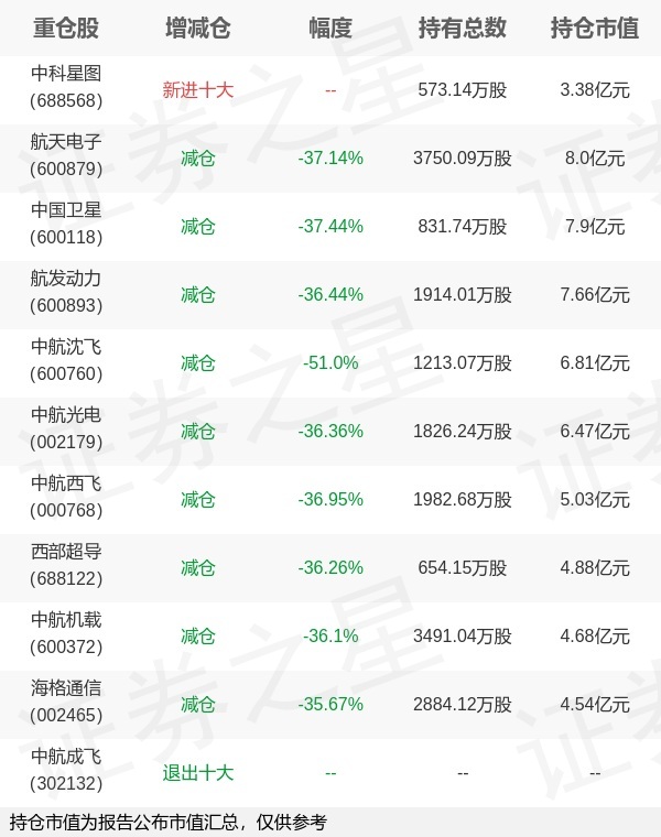 证券之星消息,1月22日富国基金旗下王乐乐 牛志冬管理的富国中证军工龙头交易型开放式指数基金公布年报,近1年净值增长率46.97%。与上一季度相比,该基金前十大重仓股新增中科星图;其中航天电子持仓占比7.95%,为该基金第一大重仓股;中航成飞等退出前十大重仓股;详细数据如下: