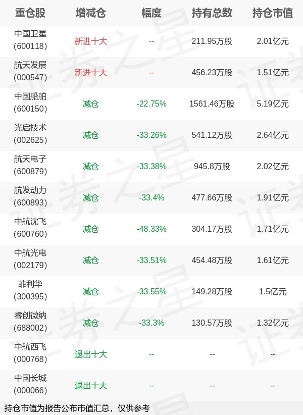 证券之星消息,1月22日广发基金旗下霍华明管理的广发中证军工交易型开放式指数基金公布年报,近1年净值增长率48.3%。与上一季度相比,该基金前十大重仓股新增中国卫星,航天发展;其中中国船舶持仓占比8.7%,为该基金第一大重仓股;中航西飞,中国长城等退出前十大重仓股;详细数据如下: