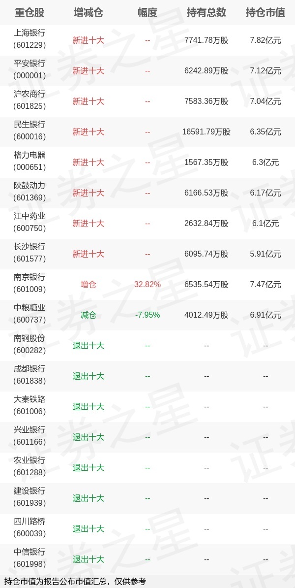 证券之星消息,1月22日华泰柏瑞基金旗下柳军管理的华泰柏瑞中证红利低波动交易型开放式指数基金公布年报,近1年净值增长率6.87%。与上一季度相比,该基金前十大重仓股新增上海银行,平安银行,沪农商行,民生银行,格力电器,陕鼓动力,江中药业,长沙银行;其中上海银行持仓占比2.92%,为该基金第一大重仓股;南钢股份,成都银行,大秦铁路,兴业银行,农业银行,建设银行,四川路桥,中信银行等退出前十大重仓股;详细数据如下: